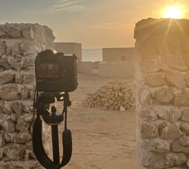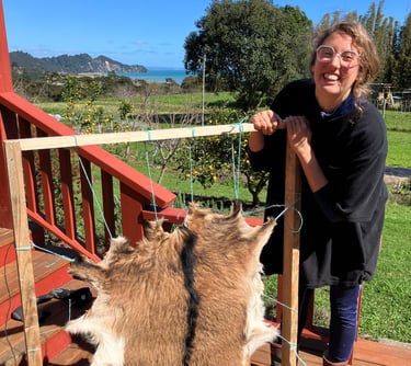 Desertic spaces, empty roads, fishermen and a sunburn at 8 a.m. in Qatar. Curing a goat skin, planting native trees, observing birds and spiders' eyes at night in Aotearoa New Zealand.